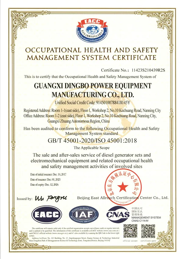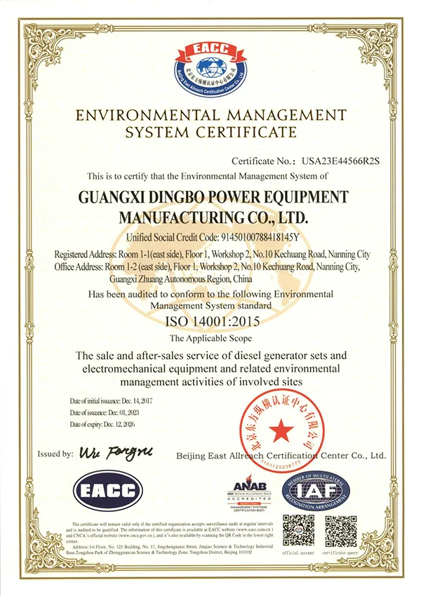 Performa unggul kami didukung dengan berbagai sertifikasi standar kualitas nasional dan internasional. Setiap fase dari operasi kami, dari R&D hingga pengujian akhir produk, kami terus menerapkan protokol QC. Setiap genset bukan hanya memenuhi standar dan spesifikasi yang dibutuhkan tetapi banyak yang melebihi kedua hal tersebut. Seluruh produk kami telah memiliki sertifikasi CE dan sesuai dengan ISO9001, ISO14001, dan ISO45001 sistem manajemen kualitas, menjadi dasar dedikasi kami terhadap kualitas dan bertanggung jawab atas lingkungan.